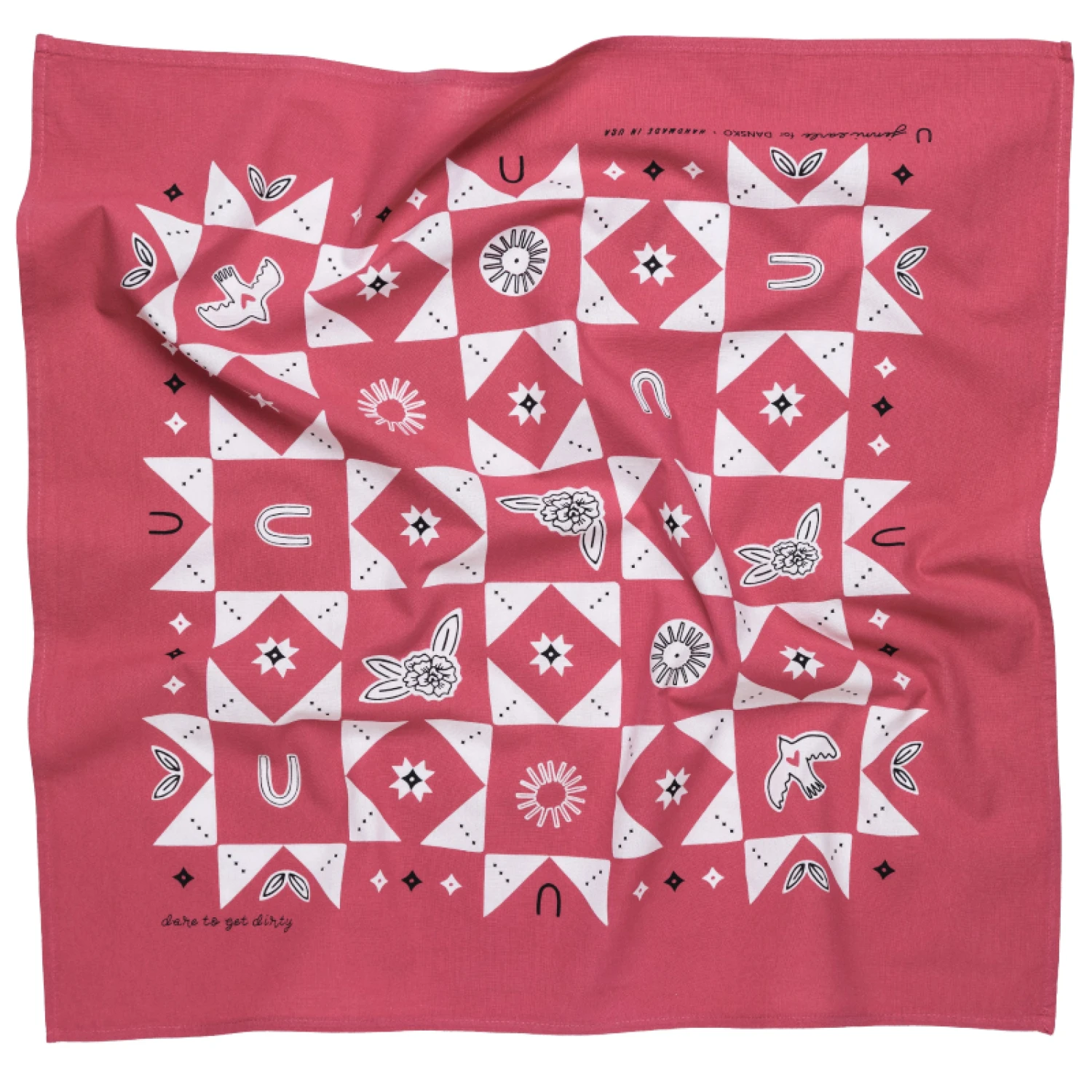 The Jenni Earle x Dansko collab celebrates the spirit and resilience of women who aren’t afraid to get their hands dirty. We gravitate towards workwear that goes the extra mile with us, like a bandana that gets softer after going through the wringer. Woven into the artwork are symbols that honor Dansko’s origin story — born in a barn — represented by the horseshoe, a nod to luck and hard work. The bird with a heart embodies the passions that take flight, a shared belief between both brands in following one’s purpose. Meanwhile, the rising sun represents the optimism of new horizons, echoing the spirit of adventure that drives both Dansko and Jenni Earle.